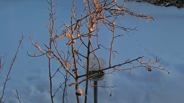 Зимнее утро у кормушки синички снегири воробьи и другие птички.