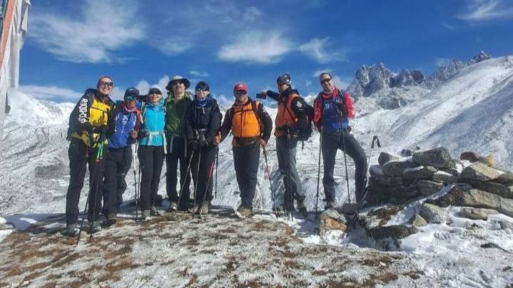 Группа Клуба 7 Вершин "Неразлучные" на переходе в поселение Гокио