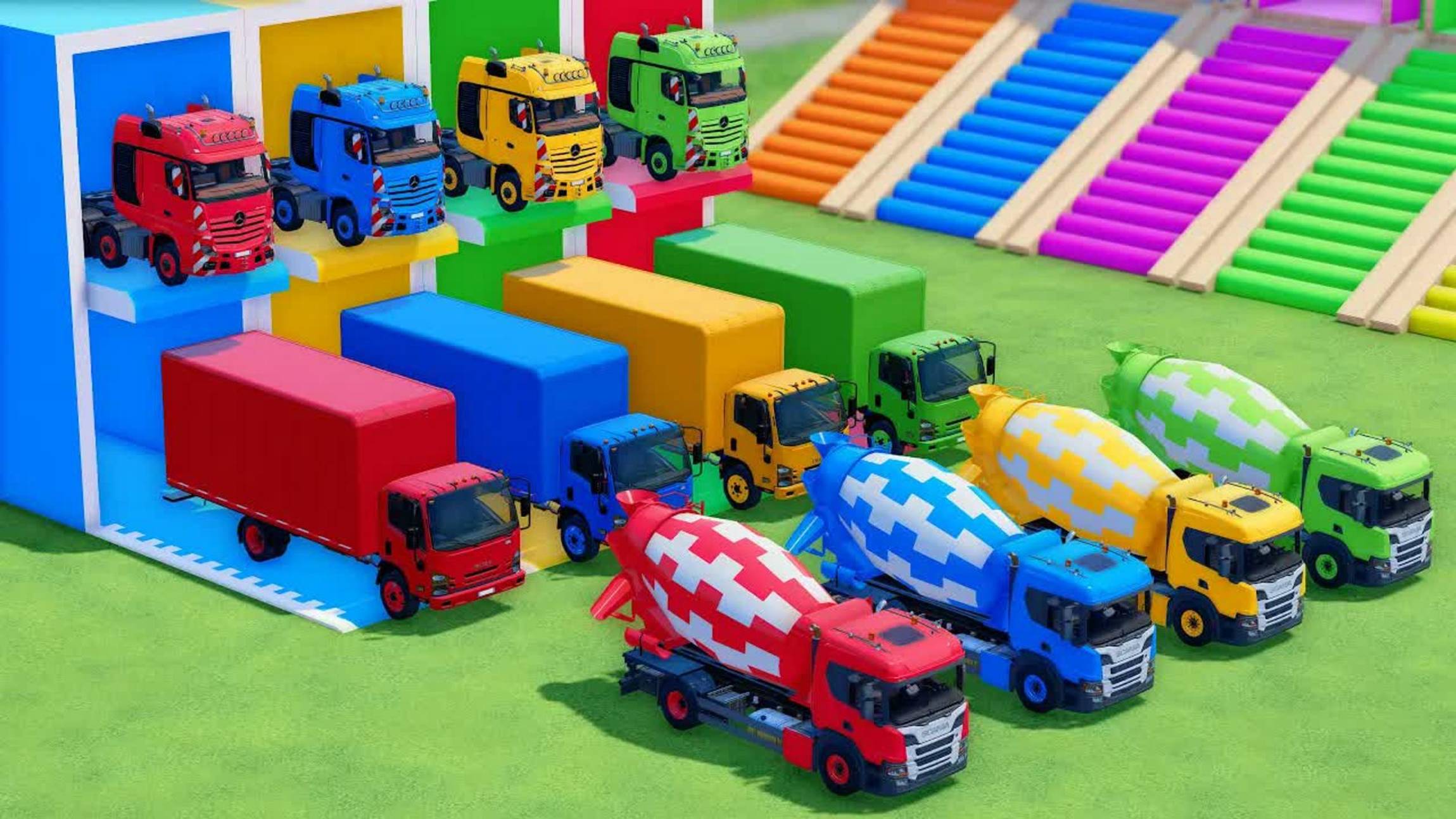 Катаемся на крутых разноцветных машинках и грузовиках из мультиков для детей №15 🚗