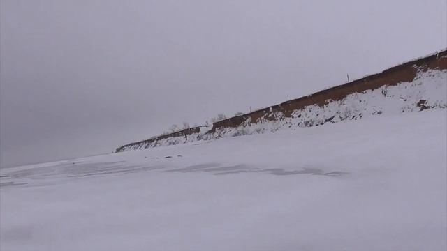 Выехал на берег нашего залива. Решил прокатиться на мотора хе, заодно посмотреть обстановку и продолжить испытания мотора хе на снегу.