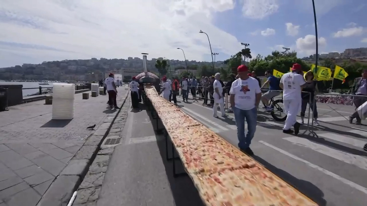 Пиццу длиной почти 2 километра приготовили на набережной итальянского Неаполя в рамках фестиваля пиццы, установив новый мировой рекорд, который будет занесен в книгу рекордов Гиннеса. Как сообщило в четверг издание Panorama, на изготовление традиционной "Маргариты" ушли 2 тонны муки, 1,6 тонны помидоров, 2 тонны моцареллы, 200 литров оливкового масла и 30 килограммов базилика. Чтобы испечь пиццу длинной 1.853,88 метра, потребовались 6 часов 11 минут и руки 250 пиццайол, приехавших в Неаполь со всего мира. После того как представители Книги рекордов Гиннеса измерили "Маргариту" и зарегистрировали новое мировое достижение, пиццей угостили многочисленных неаполитанцев, пришедших на набережную, чтобы собственными глазами увидеть это произведение кулинарного искусства.
