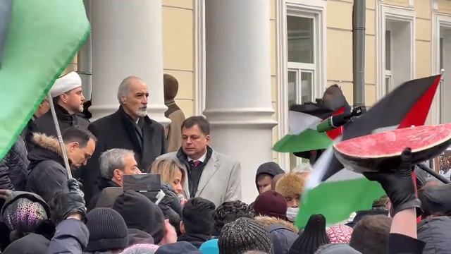 Возле посольства Палестины проходит акция.
