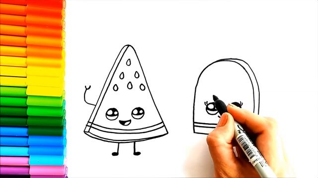 Милый рисунок арбуза - Милый рисунок арбузного мороженого - Простые рисунки - Рисунок арбуза