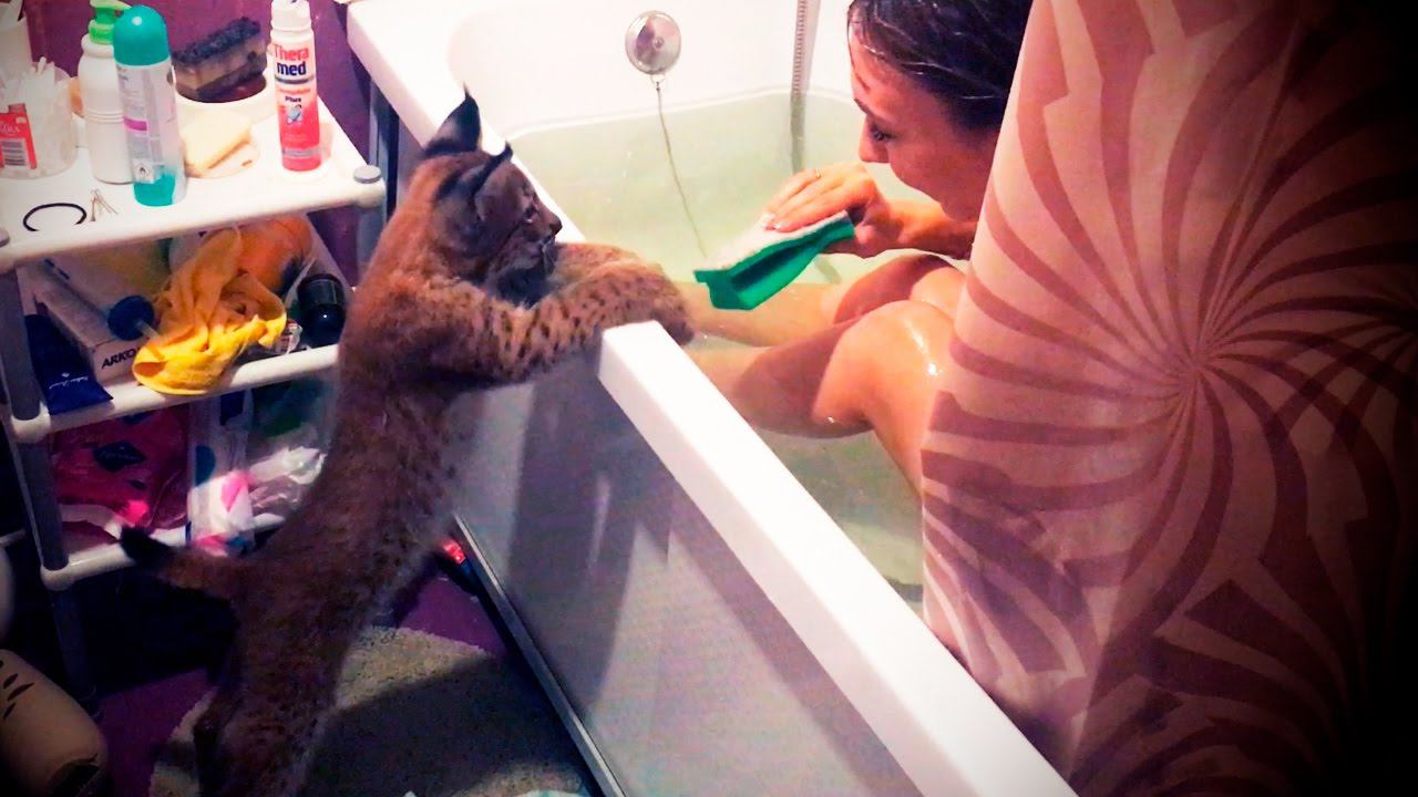 Уговариваю рысь Ханну принять ванну / I persuade lynx Hannah to take a bath