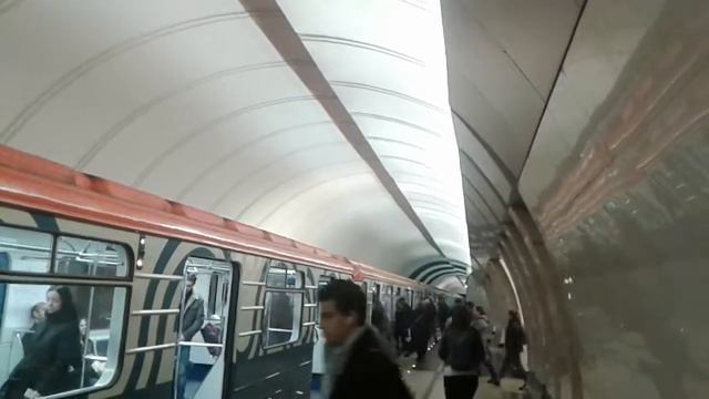 Состав из вагонов 81-717.5М/714.5М на станции Марьина Роща, Люблинско-Дмитровская линия, Московский метрополитен, 05.10.2019