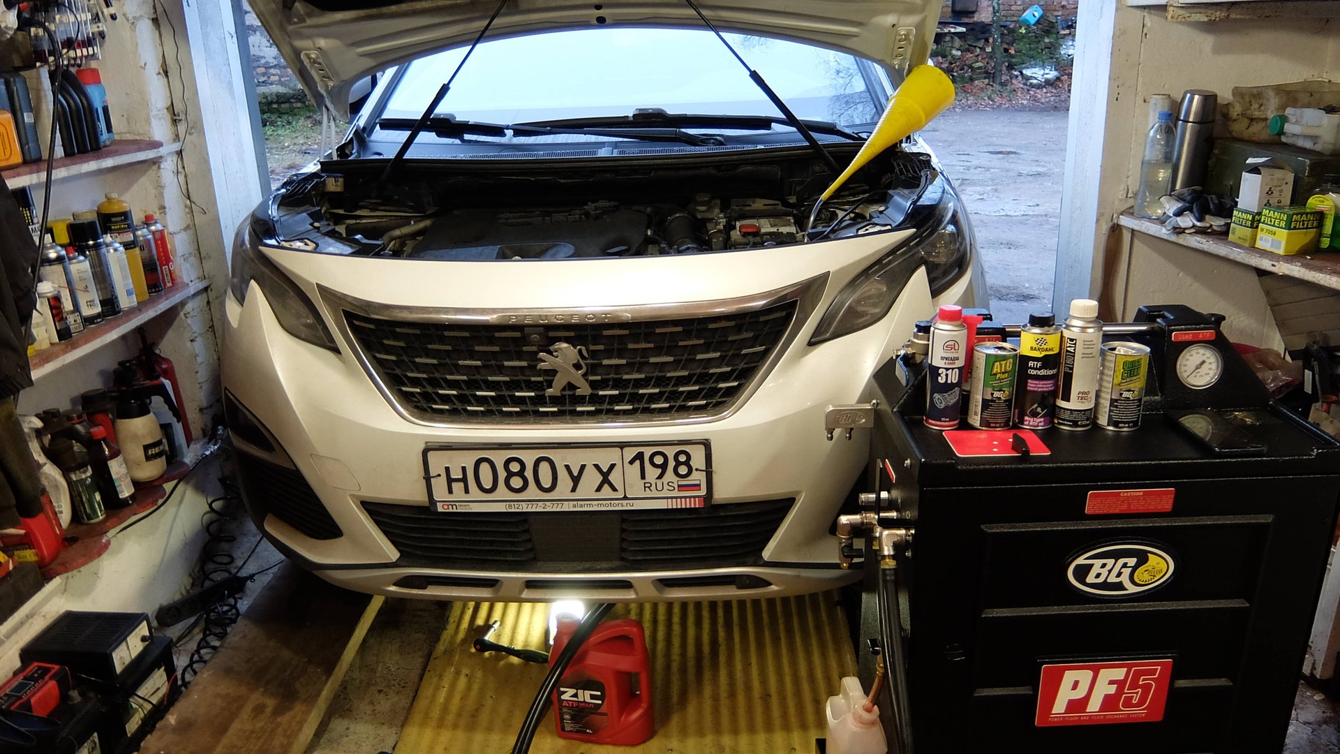 +7-921-980-79-56 Ливанцов Антон СПб, г. Пушкин, г. Павловск Как заменить масло/трансмиссионную жидкость ATF в АКПП AISIN EAT6 французского автомобиля Peugeot 3008 или 5008 с двигателем 2.0 HDi 150 DW10FD? Частичная замена масла(трансмиссионной жидкости) по инструкции производителей АКПП должна производится на пробегах 20-30 тысяч километров. К сожалению частичный способ замены масла(трансмиссионной жидкости) не позволяет удалить все скопившиеся продукты износа в автоматической трансмиссии, так как половина объема остается не доступной для слива. Аппаратная замена масла, а вернее промывка автоматической трансмиссии позволяет удалить старое масло до 98-99 процентов от основного объема, а также удалить продукты износа, а именно: металлическую стружку, резиновую пыль, продукты распада фрикционов. Эти продукты износа являются абразивом для трущихся элементов важных исполнительных механизмов, что приводит к не корректной работе коробки передач, что проявляется задержками в переключении, передергиванием, толчками и пинками. По опыту, в новое масло я рекомендую добавлять кондиционер масла ATF ServiceLine ATF Conditioner(артикул SL 310) и металло плакирующую присадку Valena-SV для АКПП. Первая придает маслу следующие свойства: защищает жидкость и предотвращает её термический распад и окисление; улучшает устойчивость к окислению, продлевая срок службы жидкости и трансмиссии в целом; предотвращает образование отложений; предотвращает утечки посредством защиты сальников от пагубного воздействия кислот; Эффект проявления - мягкость переключения. Вторая присадка оказывает следующее воздействие: создает серво-видную пленку на парах трения металла, что понижает коэффициент трения, таким образом снижается потери энергии на трение, уменьшается температура сопрягаемых деталей, уменьшается износ этих пар трения, продлевается ресурс агрегата в целом; Серво-видная пленка препятствует проникновению ионов водорода в глубь металла, тем самым препятствует разрыва металла изнутри, это понятие называется - охрупчивание, тем самым, например, подшибники качения не имеют износа. Эффект проявления - увеличение наката.