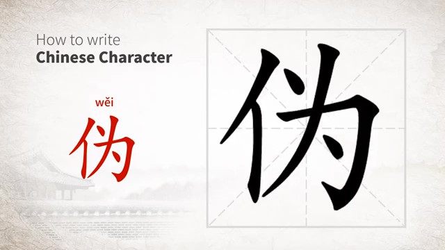 伪 (wěi) false; spurious; bogus; forged; puppet; collaborationist; to fake