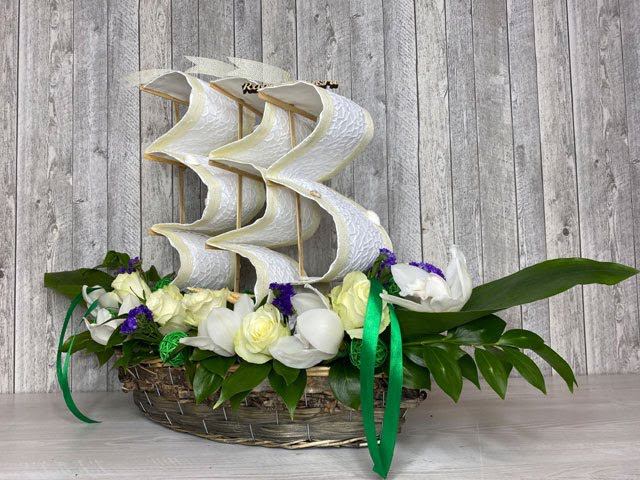 Парусник из живых цветов