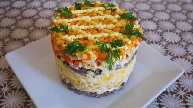 САЛАТ рецепт ВКУСНЫЙ и СЫТНЫЙ салат на ПРАЗДНИЧНЫЙ стол Салат с кукурузой и сердцем салаты рецепты