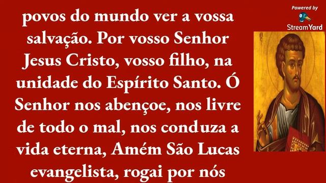Ó Deus que lhe escolhestes São Lucas para revelar em suas palavras e escritos o mistério do vosso amor para com os pobres, concedei aos que já se gloriam do vosso nome, perseverás num só coração e numa só alma e a todos os povos do mundo ver a vossa salvação. Por vosso Senhor Jesus Cristo, vosso filho, na unidade do Espírito Santo. Ó Senhor nos abençoe, nos livre de todo o mal, nos conduza a vida eterna, Amém São Lucas evangelista, rogai por nós Seja bem vinda, bem vindo ao nosso Canal! Inscreva-se, curta, compartilhe e deixe o seu comentário e pedido de oração! Deus Lhe abençoe!! #jesus #Maria #José #sãojosé #Nossasenhora #liturgiadiária #liturgia #palavradedeus #liturgiadodia #oração #igreja #deus #jesus #church #brasil #amor #fé #louvor #love #brazil #palavra #riodejaneiro #adoração #god #instagood #biblia #gospel #santidade #israel #espiritosanto #deusnocomando #jesuscristo #milagres #bomdia #photography #ministério #revelação #assembleiadeisrael #unção #intimidade #santidade #deus #igreja #amor #louvor #fé #adoração #intimidade #palavra #ministério #unção #israel #revelação #pastoreio #milagres #assembleiadeisrael #igrejadosmilagresdedeus #consagração #jesus #biblia #jesuscristo #espiritosanto #oração #god #kids #cristo #evangelho #deusnocomando #paz #brasil #oração #fé #deus #jesus #amor #deusnocomando #biblia #paz #jesuscristo #bíblia #god #igreja #boanoite #louvor #evangelho #cristo #brasil #palavradedeus #palavra #bomdia #gratidão #gospel #deusnocontrole #espiritosanto #sabedoria #salvação #love #motivação #vida #jesusteama#igreja #deus #jesus #church #brasil #amor #fé #louvor #love #brazil #palavra #riodejaneiro #adoração #god #instagood #biblia #gospel #santidade #israel #espiritosanto #deusnocomando #jesuscristo #milagres #bomdia #photography #ministério #revelação #assembleiadeisrael #unção #intimidade#católico #fé #papafrancisco #esperança #gratidao #coracoralina #perdão #madreteresadecalcuta #catholic #paz #madre #totustuus #igreja #santamissa #jesus #santidade #deus #católica #igreja #foto #brasil #fotografia #minhacidade #canon #batizado #amazonia #nossasenhora#santo #deus #jesus #igreja #jesuscristo #amor #espiritosanto #cristo #god #biblia #crisma #batizado #lembrancinhas #casamento #primeiracomunhao #convitebatizado #gjc #maedonoivo #maria #cristãos #imagens #igrejacatolica #amoqueamo #batismo #catolicos #lembrancinhapersonalizada #24hparajesus #dindo #delicia #batismocatolico #igrejacatolica #igreja #brazil #brasil #photography #catolicos #fé #jesus #batismo #batizado #espiritosanto #church #fe #catholic #deus #convitepadrinhoscrisma anjos, imaculada,conceição,bíblia,batismo,cristo,cristão,católica,deus,salve rainha,Jesus, maria, josé, santa, santo, santas, santos, nossa senhora, carmo, amor, fé, esperança, caridade, igreja, Deus, canto, missa, homilia, diaria, espiritualidade, discípulo, bíblia, caminho, deus, pai, filho, espirito, palavra, amar, fraternidade, solidariedade, oração, orações, religioso, church, louvor, bíblia, santidade, milagres, ministério, unção, palavra, evangelho, paz, motivação, vida, love, god, gratidão, foco, felicidade, esperança, católico, catholic, nossa Senhora, aparecida, comunhão, batizado,crisma, convite, noiva, pentecostes, santíssimo breve de roma, santa rita, catena legionis, milagroso, poderosa, forte, salmo 91, são miguel, dormir em paz, bom sono, são jorge, maria passa na frente, pai eterno, libertação, bento, terço, anjo da guarda, santa rita, antiga fabio de melo, Reginaldo Manzotti, Benção, canção nova, Ao Vivo, download, Cristão, música, DVD, oficial, walmir alencar,padre marcelo rossi, ninguem te ama como eu, basta querer, Noites Traiçoeiras, belo, Minha Essência, thiago brado, ninguem explica Deus, recebe o meu nada, exalar teu cheiro, meu alvo, Oração, pela, familia, Padre Zezinho, música católica, melhores músicas católicas, és lindo, meditação, tudo é do pai,