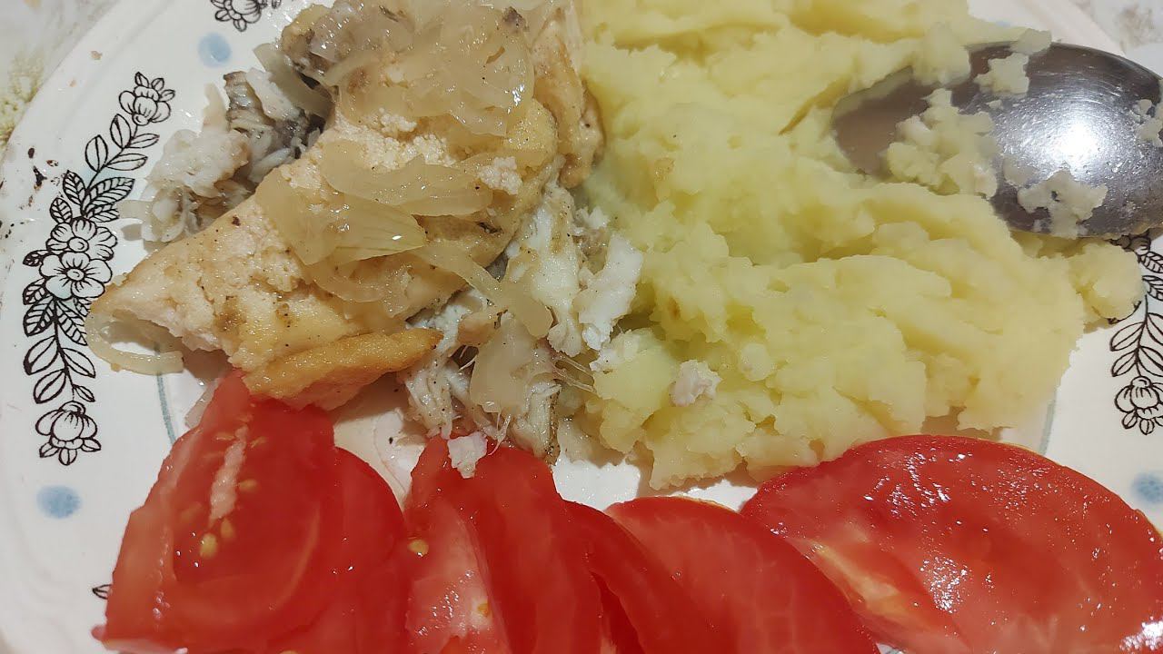 Домашняя еда: пюре+ жареная камбала и компот