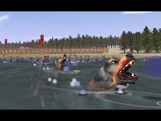 RomeTW онлайн. Милые свирепые твари. Плавающие боевые псы римлян. Римляне штурмуют переправу.