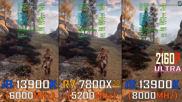 i9 13900K (DDR5 - 6000MHz) vs R7 7800X3D (DDR5 - 5200MHz) vs i9 13900K (DDR5 - 8000MHz) || 2160P ||