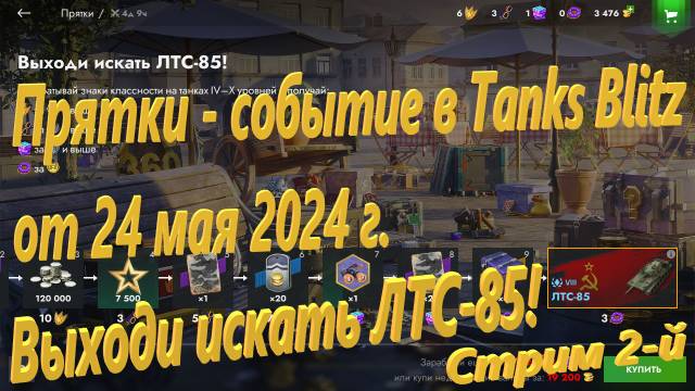 Прятки - событие в Tanks Blitz от 24 мая 2024 г. Выходи искать ЛТС-85! Стрим 2-й.