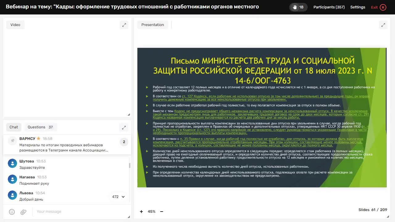 Вебинар ВАРМСУ "Кадры: оформление трудовых отношений с работниками ОМСУ"