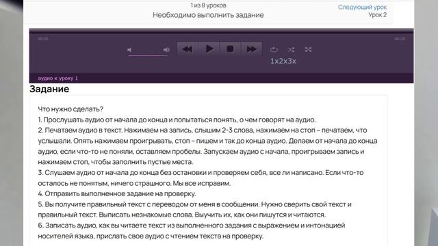 Курс "Понимание на слух" это классическая методика, которая 100% помогает слышать и распознавать английскую речь на слух. На курсе в уроке задание состоит из: 1)вы слышите диалог между носителями языка и задача написать максимум того, что вы слышите🎧. То, что слышим пишем✍️, что не слышим - ставим три точки или оставляем пробелы. 2)разбираем, что носители произносили опираясь на текст. заполняем свои пробелы, учим новые для себя слова👨🎓. (все новые слова я даю с переводом) 3)еще раз слушаем носителей, тот же самый текст, чтобы привыкнуть к натуральному произношению. 4)записываем голосовое сообщение и отправляем мне на проверку. максимально пытаемся скопировать произношение за носителями языка⭐️. С каждым уроком будет становиться легче понимать английскую речь на слух💯. Эта проблема решаема. Зайти на курс https://annagulak.ru/listeningdialog_index Стоимость курса 30 дней (8 уроков) 2200 руб.