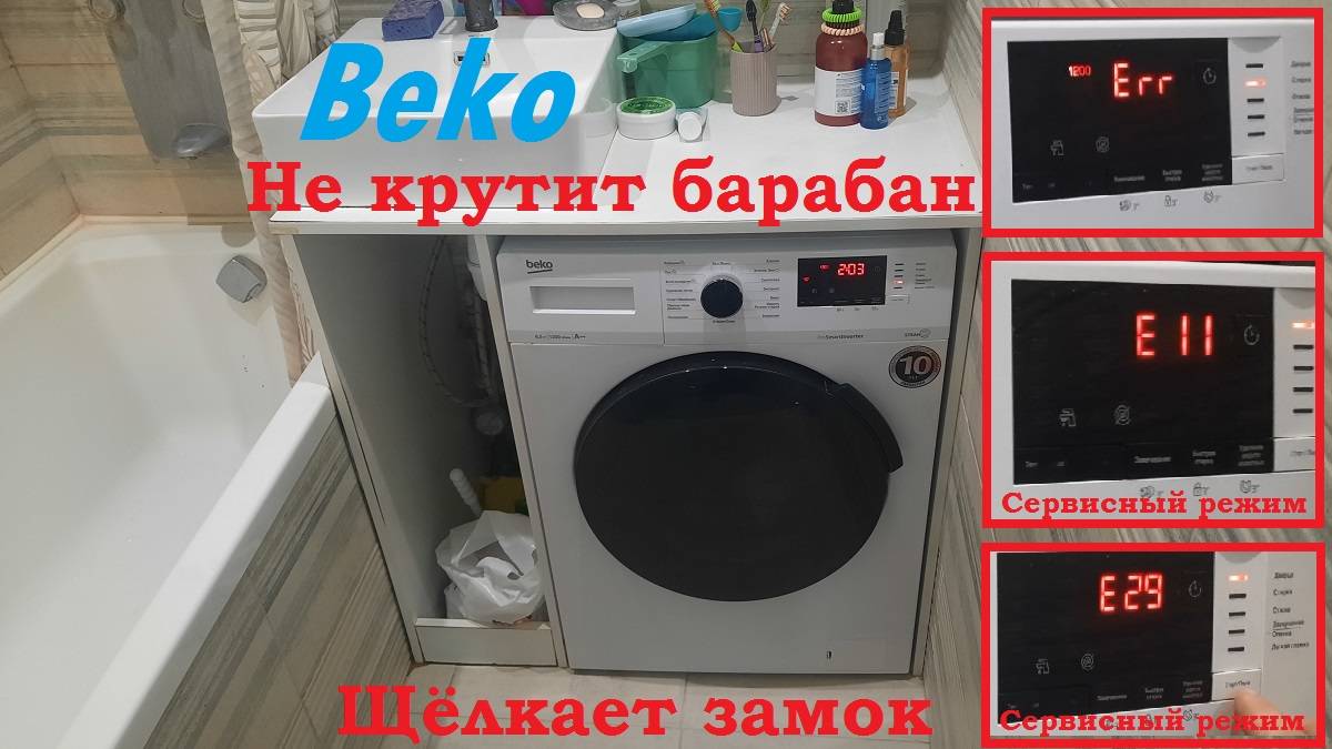 SM004 Стиральная машина BEKO WSPE6H612W щёлкает замком, не крутит, ошибка E11 и E29 - замена ТЭНа