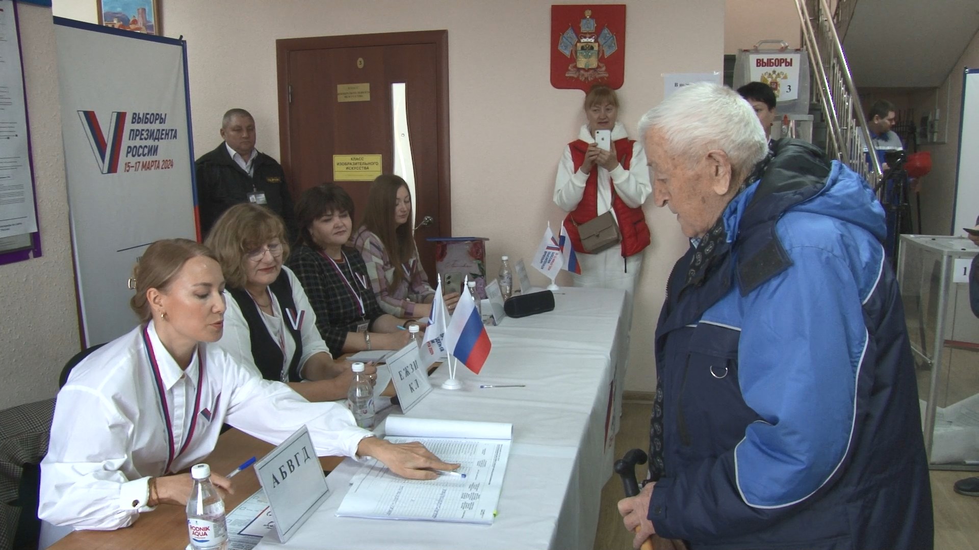 На избирательный участок юбиляр пришёл лично. В торжественной обстановке Владимиру Волошанскому вручили свидетельство почётного избирателя курорта и памятный подарок.