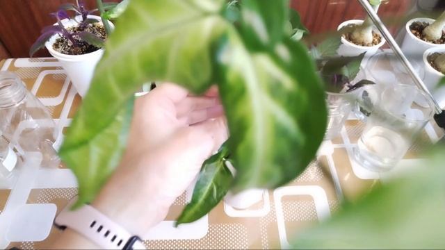 Первый опыт черенкования Адениума. А так же Гинуры и Сингониума.