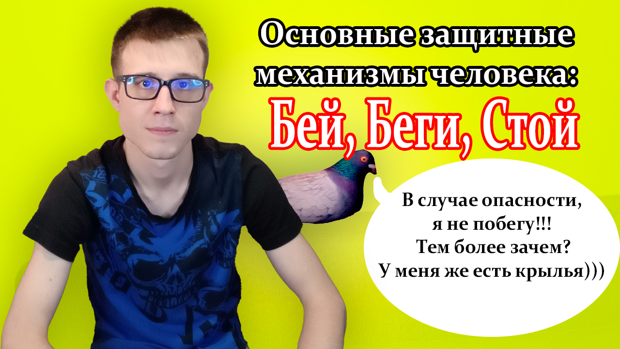 Всем привет, меня зовут Михаил, и сегодня я бы хотел с вами поговорить про основные защитные механизмы человека: Бей, Беги, Стой. Многие слышали про это, не до конца понимали, а что это все значит. В этом видео я на примерах разберу, как они работают, как и когда проявляются, а также расскажу о недостатках и преимуществах каждого. Всем приятного просмотра!