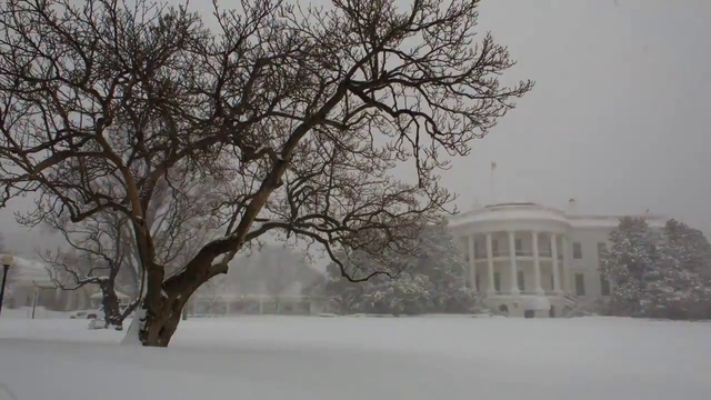 В результате снежного урагана в Вашингтоне 27 января 2016 года снегом замело резиденцию президента США.