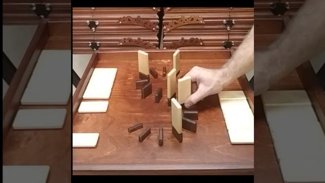 Игроки по очереди выставляют доминошки на специальные пьедесталы. Кто уронит доминошки, тот проиграл.