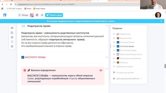 О праве Право представляет собой систему общеобязательных, формально определенных норм, установленных и гарантированных государством, которая выступает мощным регулятором общественных отношений, направленным на установление и поддержание порядка, стабильности и справедливости в социуме. Сущность права раскрывается через баланс интересов различных социальных групп и отдельной личности, закрепляя меру свободы и ответственности человека, а также пределы допустимого вмешательства государства в частную жизнь. О системе права РФ Система права Российской Федерации представляет собой внутреннее строение национального права, которое объективно отражает существующие общественные отношения и подразделяется на крупные блоки — отрасли, такие как конституционное, гражданское, уголовное и административное право, каждая из которых регулирует качественно однородную сферу жизни. В основе построения системы права РФ лежат два ключежных элемента: предмет правового регулирования (то есть совокупность общественных отношений, которые требуют правового воздействия) и метод правового регулирования (способы и приемы воздействия на эти отношения, например, императивный или диспозитивный). Об источниках права Источники права в Российской Федерации — это официальные внешние формы выражения и закрепления правовых норм, среди которых высшей юридической силой обладает Конституция РФ, задающая вектор развития всего текущего законодательства. Основным видом источников права в РФ являются нормативно-правовые акты (федеральные законы, подзаконные акты Президента и Правительства, конституции и уставы субъектов Федерации), которые образуют строгую иерархическую систему, обеспечивающую единство и непротиворечивость правового регулирования. 00:00 Право в системе социальных норм. 07:49 Система права России 26:23 Источники права