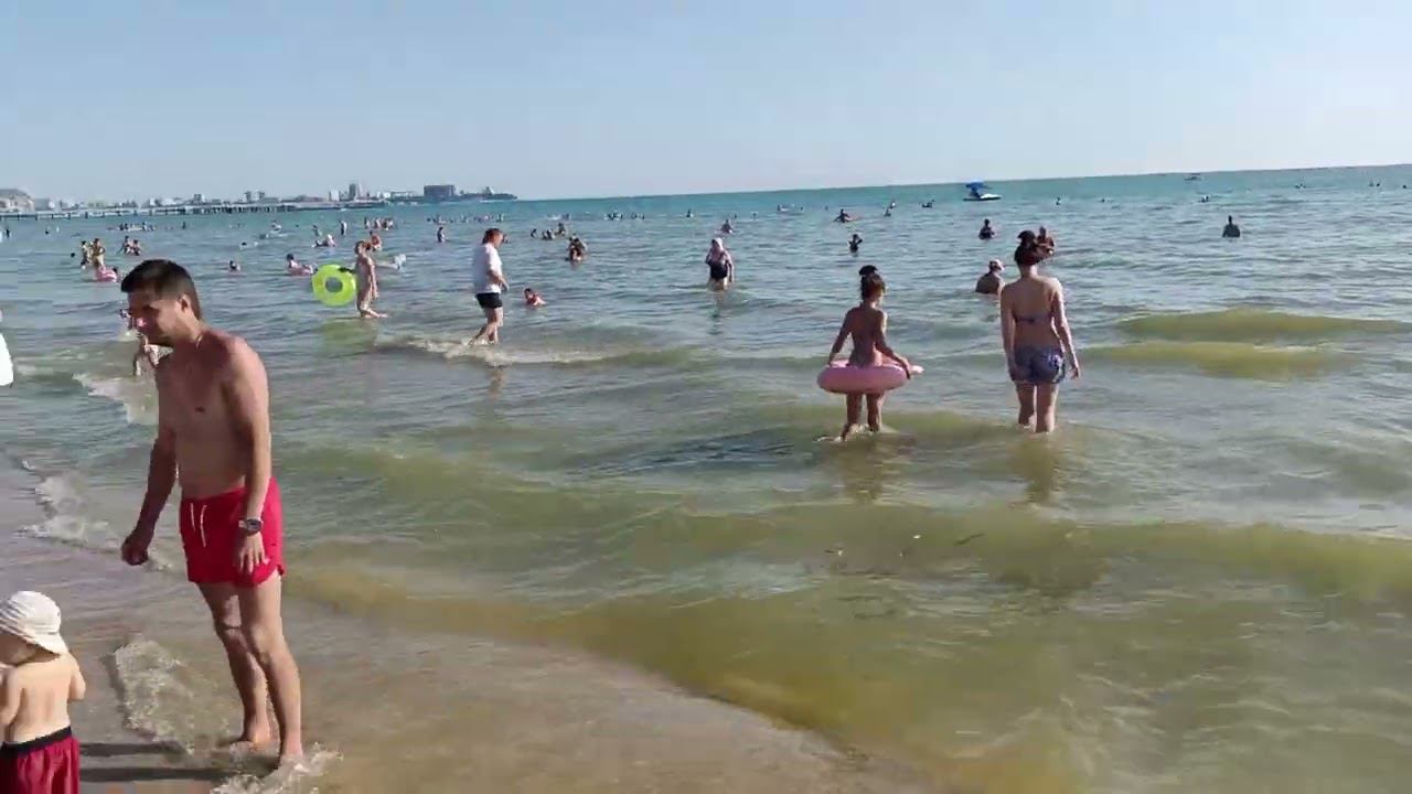 Вечерний пляж Джемете. Очень много отдыхающих. Море грязное. 3 июля 2023. 18.00
