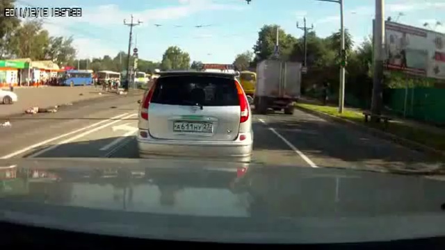 В Хабаровске (Россия) водитель автомобиля сбил пешеходов на переходе и скрылся с места происшествия.