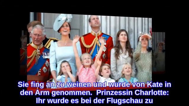 Die Mini-Royals mischen den Palastbalkon auf Nach der Militärparade schaute sich die Queen mit ihrer Familie auf dem Balkon des Palastes die Flugschau der Red Arrows-Luftwaffe an. Dabei zogen Prinz George und Prinzessin Charlotte alle Blicke auf sich. Die Mini-Royals sorgten schon oft für lustige Momente bei öffentlichen Auftritten der königlichen Familie. So auch bei der Trooping-the-Colour-Parade. Prinzessin Charlotte, Prinz George und Savannah Phillips, die Enkelin von Prinzessin Anne, waren von der Flugschau offenbar schwer begeistert. Prinzessin Charlotte, Savannah Phillips und Prinz George: Die Kleinen haben sichtlich Spaß. (Quelle: dpa) Zu dem wohl witzigsten Moment kam es dann, als der kleine Prinz George die Nationalhymne anstimmen wollte. Er scheint nicht der beste Sänger zu sein, denn die vierjährige Savannah Phillips legte ihm ohne zu zögern die Hand auf den Mund. Im Netz sorgte diese Szene für reichlich Schmunzeln. In einem hellblauen Blümchenkleid und einer Schleife im Haar begeisterte derweil Prinzessin Charlotte die Zuschauer. Als dann aber die Flugzeuge der Royal Airforce den Buckingham Palace überflogen, wurde es ihr zu laut. Sie fing an zu weinen und wurde von Kate in den Arm genommen. Prinzessin Charlotte: Ihr wurde es bei der Flugschau zu laut. (Quelle: imago) Eine Menge Spaß hatten Prinzessin Charlotte und Prinz George aber sicher trotzdem. Und am Sonntag steht schon der nächste Grund zum feiern an: Prinz Philip wird 97 Jahre alt. *************************************************************************** ••••INFORMATION • Source: https://goo.gl/TR3TYi --------------------------------------------------------------------------- Videos können das content-basierte Urheberrecht verwenden, das angemessene Nutzung enthält. Fair Use (https://www.youtube.com/yt/copyright/) Sehr aufgeregt, um mit anderen elektronischen Zeitungsseiten zusammenzuarbeiten. Bitte senden Sie mir eine E-Mail Danke fürs Zusehen