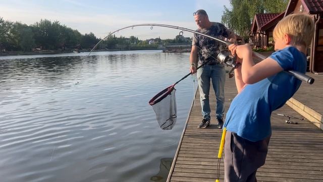 Поехали на платный водоем всей семьей. На этот раз отличился младший сын. Я не успевал бегать за ним с подсаком. Вот один из эпизодов