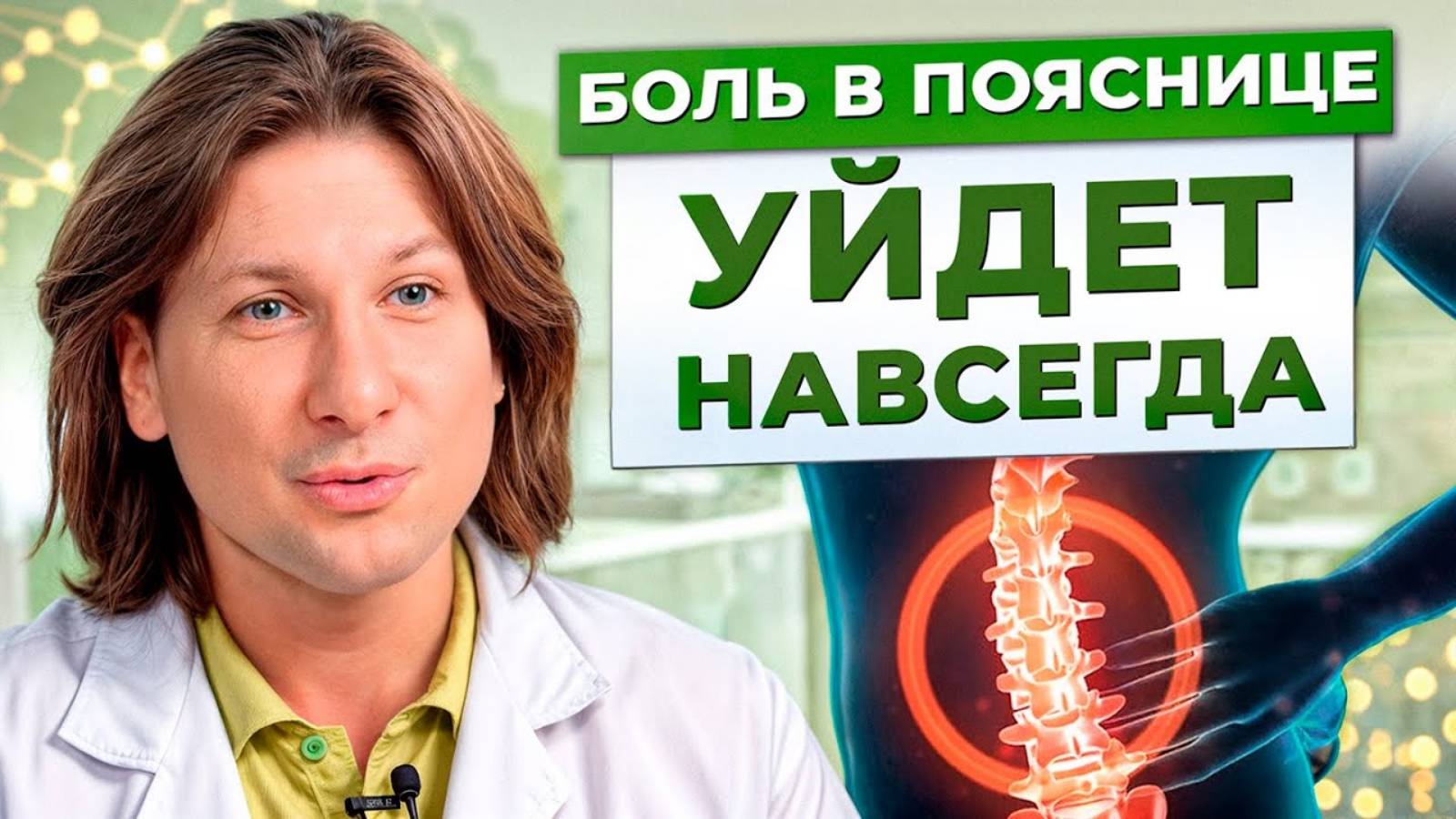 🔥Приобретайте массажер-тренажер MAST по ссылке: https://mastpro.ru/?utm_medium=video&utm_source=youtube_doctordlin&utm_campaign=25guFxYbWvk 👉Подписывайтесь на канал Евгения Мироненко, где он расскажет о своем пути восстановления: / @-mastpro Реклама: ИП Мироненко Евгений Борисович, ИНН: 010501800540, erid: 2VSb5xjL3DA 👨⚕️Записаться на консультацию можно по телефону → +7(495)489-08-88 🌐Сайт клиники: https://doctordlin.ru/?utm_medium=group&utm_source=youtube&utm_campaign=25guFxYbWvk ✅ По вопросам сотрудничества и рекламы: prhohlova@yandex.ru Всем привет! С вами Сергей Длин. Боль в спине — явление, знакомое многим. Боль может мучать в любом возрасте. Необходимо сразу предпринять меры. Давайте разберем 3 упражнения от боли в спине, которые вы сможете повторить в домашних условиях. Как избавиться от боли в пояснице? Как расслабить поясницу? Как убрать прострелы в пояснице? Досмотрите до конца и узнаете! Подписывайтесь на канал, здесь еще больше про здоровье и превентивную медицину! Какое упражнение вам больше понравилось? Напишите в комментариях! #доктордлин #здоровьечеловека #клиникадокторадлина #здоровье #упражнение #спина #поясница #боль СТРУКТУРА: 0:00 — Введение 0:51 — Причины болей в спине 2:09 — Упражнение №1 3:00 — Упражнение №2 3:45 — Что делать при сильной боли? 8:26 — Упражнение №3 9:30 — Заключение Как с нами можно связаться и где нас найти: ► Vkontakte - https://vk.com/drdlin ► Сайт - https://bit.ly/3sw8CCv ► Rutube - https://rutube.ru/channel/24797119/ Клиника доктора Длина находится по адресу г. Москва, ул. Гиляровского 51. Приходите, будем рады вам помочь! Хотите узнать, что нужно делать со своим позвоночником и суставами, чтобы быть здоровым и активным долгие годы? Тогда обязательно подписывайтесь на канал: / @doctordlin Узнать о нас подробнее и записаться на бесплатную консультацию можно здесь → https://bit.ly/3sw8CCv E-mail для предложений по вопросам сотрудничества и рекламы: prhohlova@yandex.ru Материалы, предоставленные в данном ролике, носят информационный характер и предназначены исключительно для ознакомительных целей. Не следует использовать информацию из видео как медицинские рекомендации и указания к применению. Определение диагноза и выбор способов и методик лечения осуществляется только лечащим врачом на личном на очном приеме с учетом особенностей организма и данных исследований каждого человека. Перед использованием любых лекарственных средств, которые могут быть упомянуты в данном видео, требуется консультация специалиста и ознакомление с инструкцией по применению. Видео предназначено для зрителей старше 16 лет. Рекомендации индивидуальны. Имеются противопоказания. Проконсультируйтесь со своим лечащим врачом. *