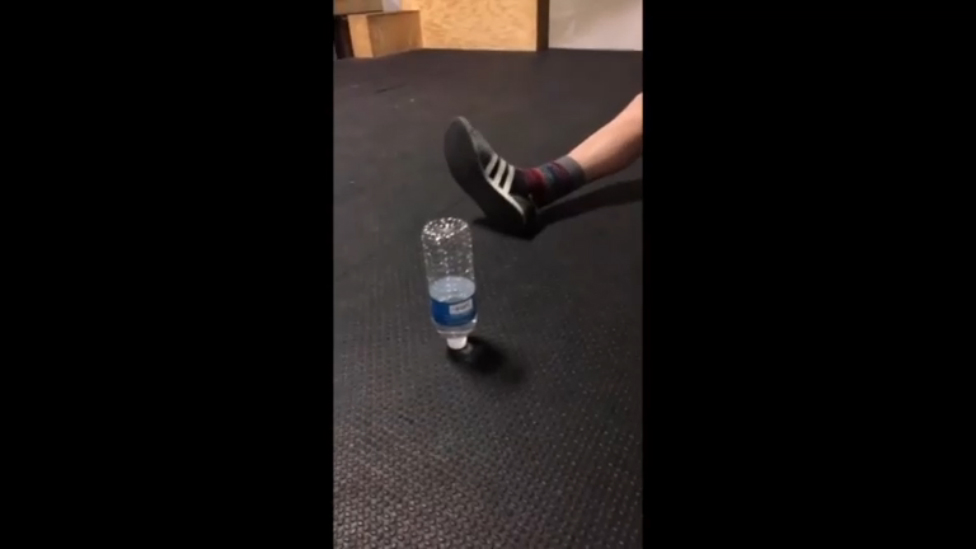 Ролик, в котором парень демонстрирует своё удивительное мастерство бросания пластиковой бутылки с водой. При этом куда бы он ни бросил бутылку, она всё время идеально попадает в цель.