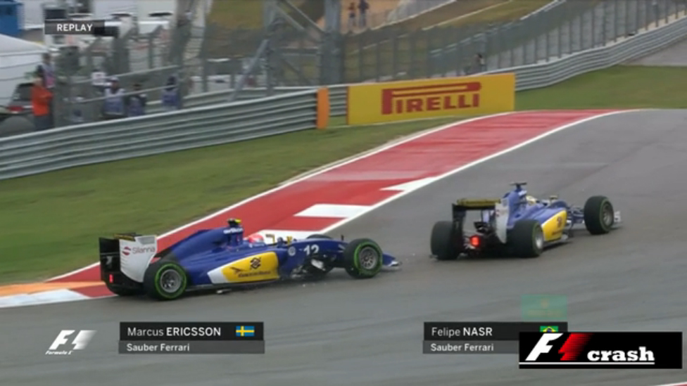 Формула 1 2015, США, Остин, авария, Маркус Эрикссон, Луис-Фелипе Наср