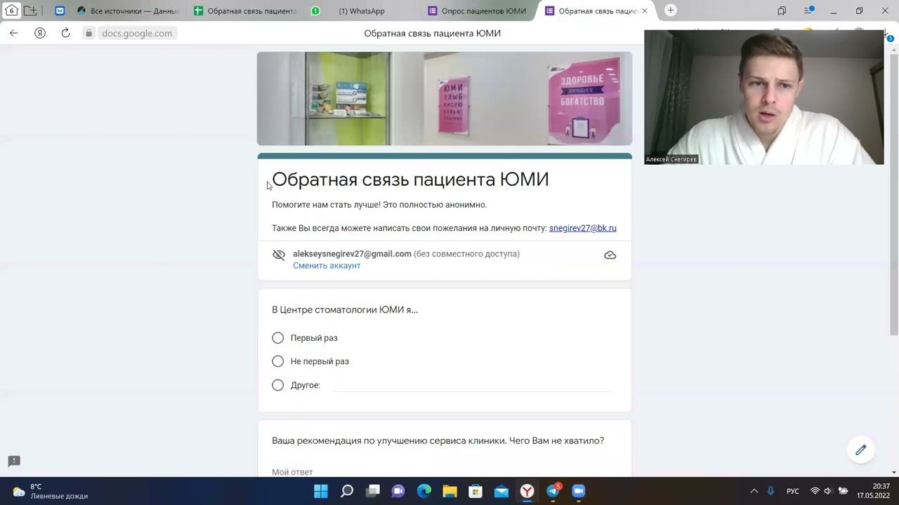Потребительский опыт в стоматологии. Почему опросы - это не завтрашний день, а уже вчерашний? https://vk.com/snegirev27 - добавляйтесь в друзья. Также можно написать насчет консультации. +7 (926) 418-46-67 - Вацап/Телеграм snegirev27@bk.ru - отвечаю тут быстрее всего
