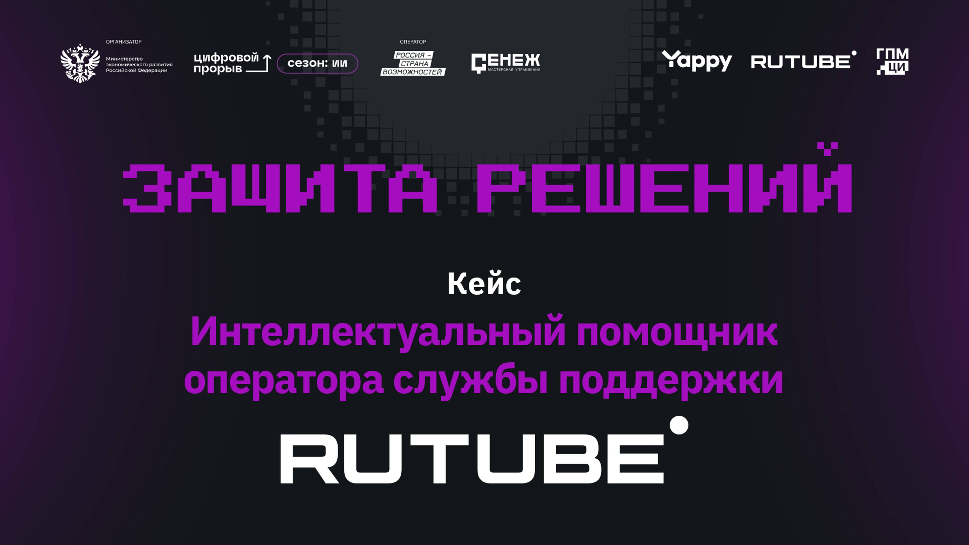Защиты решений. Rutube. Интеллектуальный помощник