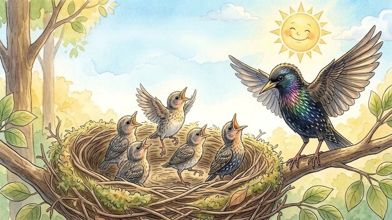 Песенка о птенчиках, которые учатся летать, петь и радоваться солнышку и лету
