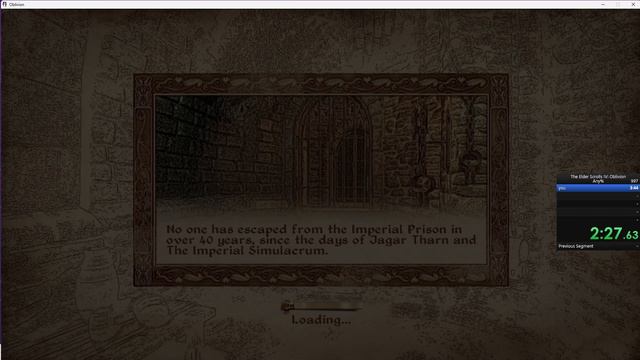 Oblivion Any% Speedrun - 3:35 shoddy start and I blacked out at 0:54 / 1:39 but otherwise pretty clean run. current standings - https://www.speedrun.com/oblivion