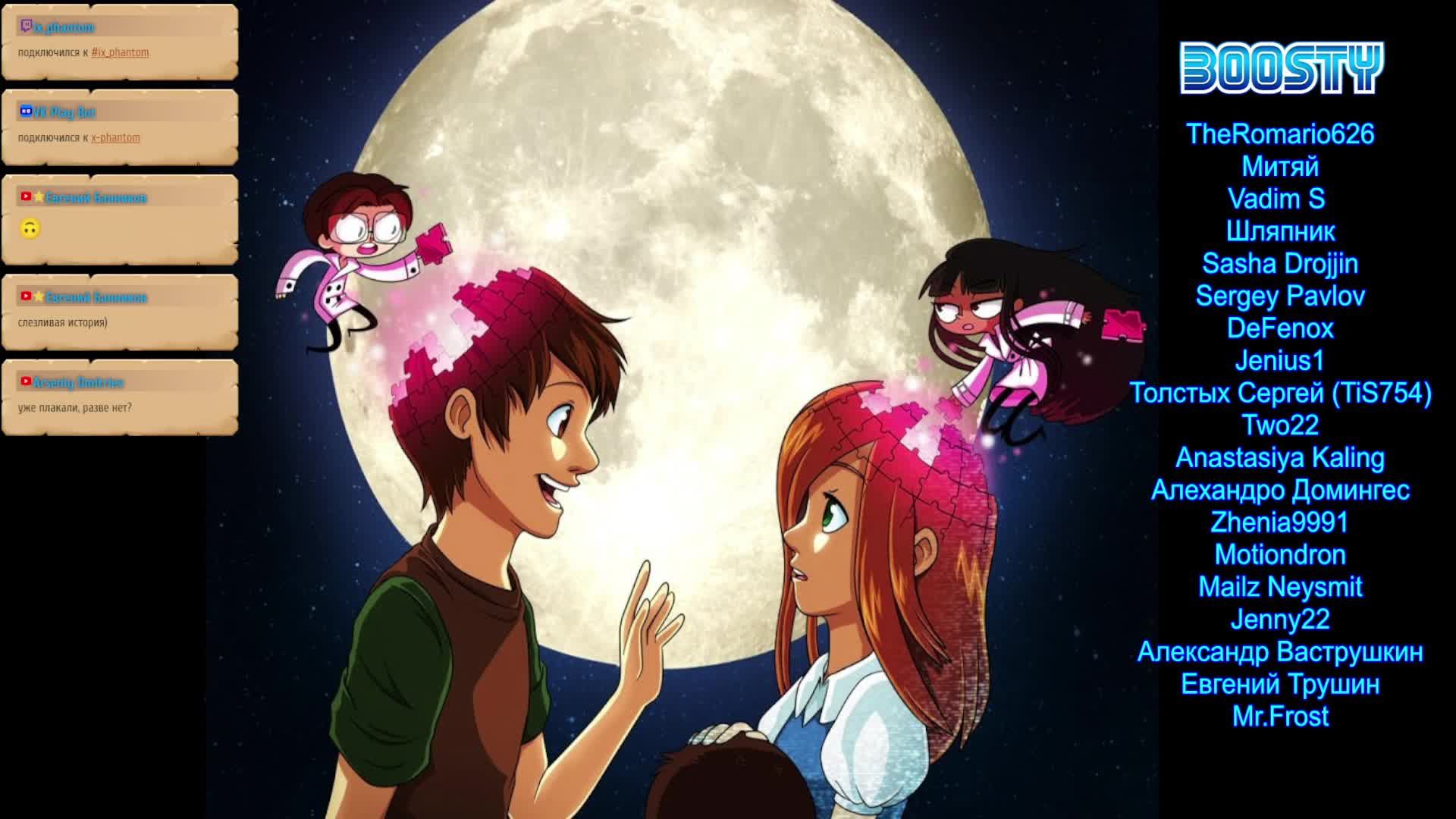 https://www.donationalerts.com/r/x_phant0m - поддержать канал Игра: To the Moon прохождение и с комментариями на русском. Стрим - обзор - полное прохождение игры To the Moon ( На Луну ) 1 ноя. 2011 г. от Freebird Games на Windows, PC, Steam, Nintendo Switch, PlayStation 5 и Xbox Series X/S. У доктора Розалин и доктора Уоттс необычная работа: они дают пациентам шанс прожить жизнь заново, с самого начала… но только в их сознании. Из-за трудности проведения операции, новая жизнь станет последним, что будут помнить пациенты перед тем, как уйти в мир иной. Поэтому эта процедура проводится только для тех, кто находится на смертном одре, чтобы исполнить желание, которое они мечтали осуществить всю жизнь, но не смогли. ---------------------------------------------------------------------------------------------------------- Real time playthrough, live stream 100% full walkthrough / longplay retro game To the Moon HD Ретро стример: Benks ( Бен, Беныч, Фантом, X-Phantom ) Приятного просмотра. ---------------------------------------------------------------------------------------------------------- Поддержать на Бусти - https://boosty.to/x-phantom/purchase/813489?ssource=DIRECT&share=subscription_link https://donatepay.ru/don/phantom - поддержать канал (резервная) ⇨ Telegram Chat: https://t.me/PubPhantom Список затащенных игр и архив БТ: ⇨ http://x-phantom.ru/spisok_igr.php ⇨ http://x-phantom.ru/BT.php Группы с анонсами стримов: ⇨ VK группа: https://vk.com/x_phant0m ⇨ Telegram: https://t.me/benxphantom ⇨ OK группа: https://ok.ru/xphantomx Ачивки/Достижения: ⇨ Клуб покорителей ачивок: https://vk.com/retroarchrus Рестрим: ⇨ Twitch канал: https://www.twitch.tv/ix_phantom ⇨ GoodGame канал: http://goodgame.ru/channel/X-Phantom/ ⇨ Trovo: https://trovo.live/s/X-Phantom/ ⇨ VkPlay: https://vkplay.live/x-phantom ---------------------------------------------------------------------------------------------------------- Список голосовых команд: !ура, !неплохо, !боль, !позабавимся, !обмыть, !твари, !Firstblood, !lol, !пиво, !notime, !clear, !go, !negative, !гэндальф, !победа, !rtrKakTak, !rtrGlavnoe, !дошик, !фиаско2, !rtrZaruinil, !rtrZloyBoss, !rtrNadejda, !rtrЁКЛМН, !rtrNevezenie, !jivi, !rtrPobedaBoss, !rtrBezuprechno, !rtrZlieBossi, !darkqueen, !lol2, !coulthard, !Zaruinil, !Skill, !Medicina, !жестко Список текстовых команд: ?stats, ?октябрь, ?апрель, ?donat, ?next Список визуальных команд (для подписчиков на Бусти): "hi, "Аплодисменты, "GameOver, "Doh, "Doit, "Фиаско, "Гендальф, "Нельзя, "ОуМай, "Серьёзно, "ГоуБеныч, "ЗаПаб, "Dance, "Зашквар, "Toasti, "Rock, "Подмигнуть, "DuckHunt, "Hakuna