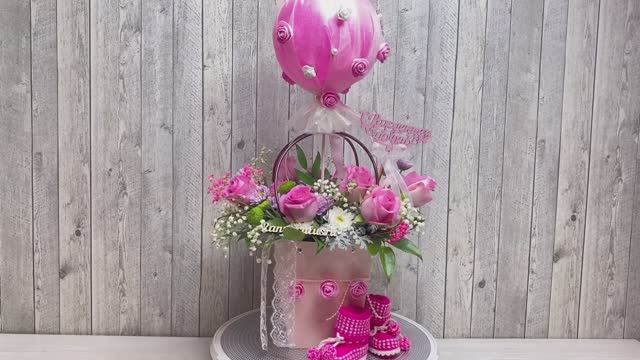 Композиция из живых цветов с шаром на выписку