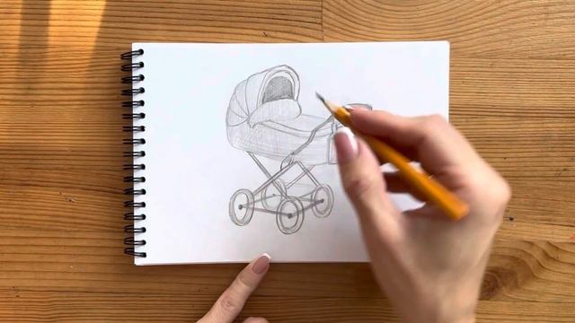 Как нарисовать коляску карандашом | Рисунок для начинающих поэтапно
