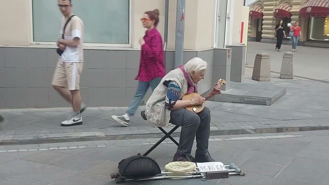 Бабуля пиликает на Никольской (26.05.23)