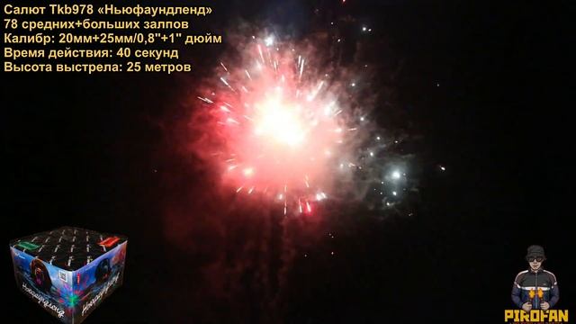 Салют фейерверк Tkb978 "Ньюфаундленд" 78 больших+средних залпов 20мм+25мм/0,8"+1" дюйм в PiroFan.ru