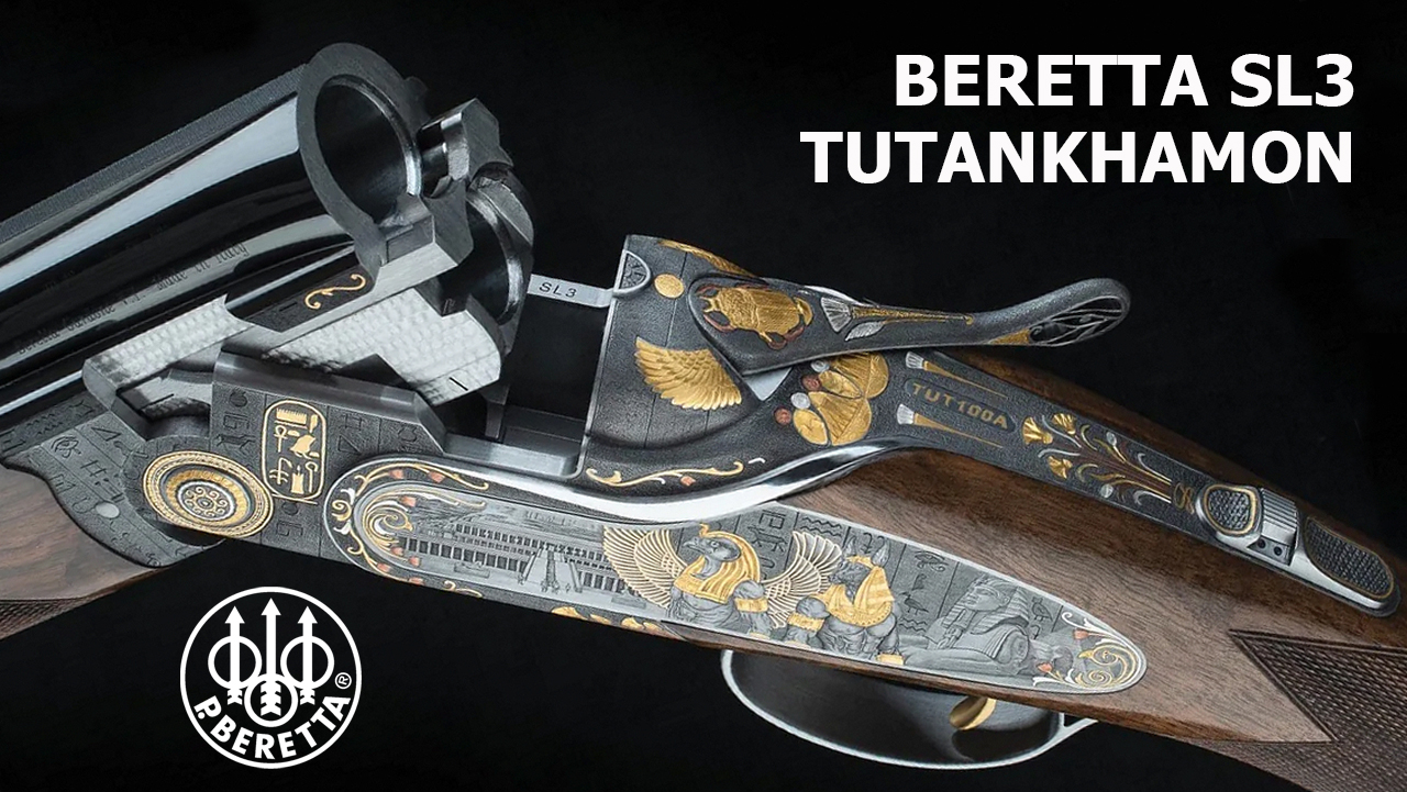 Ружьё Beretta SL3 Tutankhamon выпущено в честь 100-летия открытия гробницы фараона Тутанхамона и украшено символами египетской цивилизации и иероглифами, найденными в гробнице.