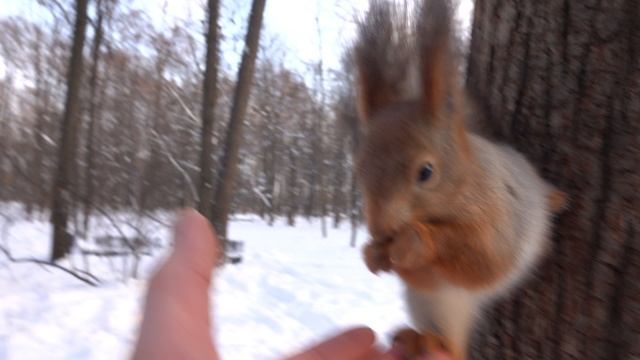 Покормил молодую белку