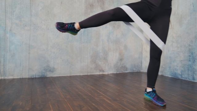 Приседание с махом в сторону с тканевой резинкой (45)