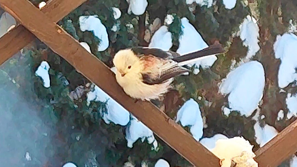 Ну какие птички к нам только не заглядывают на обед в кормушку. Длиннохвостые синички (другое название этой птицы - ополовник) - редкие гости на нашей кормушке. Компанию им составили лазоревки.