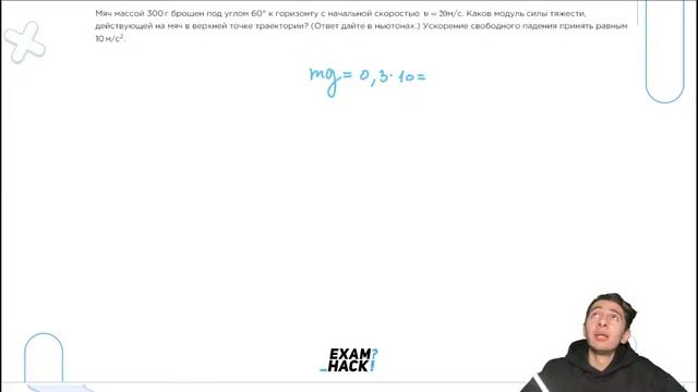 Мяч массой 300 г брошен под углом 60 к горизонту с начальной скоростью V 20 мс - 22804