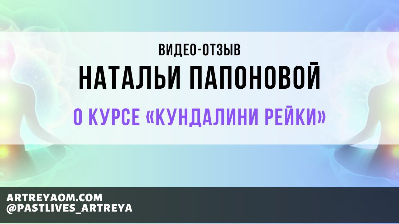 Отзыв Натальи Папоновой о курсе «Кундалини Рейки» ★★★★★★★★★★★★★★★ Записаться на сеанс регрессии: https://info.artreyaom.com/zapis_na_seans ✳️ Мои курсы и сеансы: https://taplink.ru/profile/236603/pages/ ⚛️ Отзывы: https://info.artreyaom.com/feedback ★★★★★★★★★★★★★★★ Я в соц. сетях ✳️ Телеграмм канал: https://t.me/artreya_probuzhdenie_dushi Instagram - https://www.instagram.com/pastlives_artreya Facebook - https://www.facebook.com/groups/regressivetherapy/ VK - https://vk.com/mypastlives ★★★★★★★★★★★★★★★ ⚛️ Записи сеансов: https://www.youtube.com/playlist?list=PLCF-gS3z_oZpVotcAAVMWU18xonx6jFq0 ⚛️ О сеансах регрессии: https://www.youtube.com/playlist?list=PLCF-gS3z_oZoaZDyPDDyrkoJpkBj06MYn ⚛️ Медитации: https://www.youtube.com/playlist?list=PLCF-gS3z_oZqpLpDN2YfRsS6Lp_J3S_9Z ⚛️ Мои вебинары: https://www.youtube.com/playlist?list=PLCF-gS3z_oZoKSbK1OV76dgivoBcaOnLe ⚛️ Отзывы: https://www.youtube.com/playlist?list=PLCF-gS3z_oZo4eFWBeMG4Tzbk1ptLHGf9