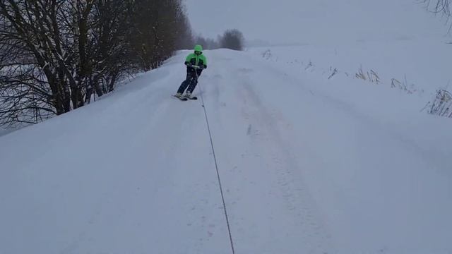 На горных лыжах за квадроциклом Stels 800 Гепард. Зимний экстрим и развлечения. Активный отдых. 2023